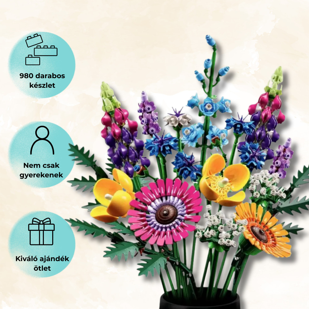 Fedezd fel az örök szépséget ezzel az egyedi, 980 darabos művirág-építőkocka készlettel! Az örök rózsacsokor dekorációként ragyog otthonodban, kreatív játékként szórakoztat, és tökéletes ajándék lehet születésnapra, évfordulóra vagy különleges alkalomra. Élvezd az építés örömét és a végén a tartós, mutatós dekoráció látványát!