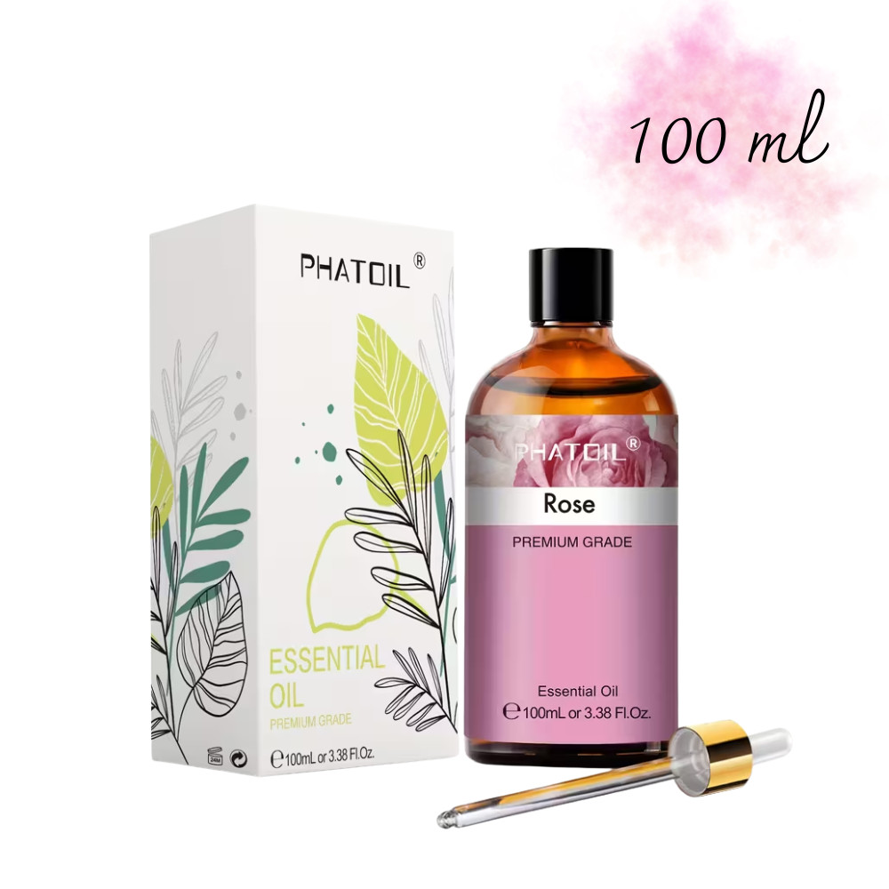 Phatoil Prémiový esenciální olej – Dárek s dřevěným osvěžovačem vzduchu 100 ml – Růže