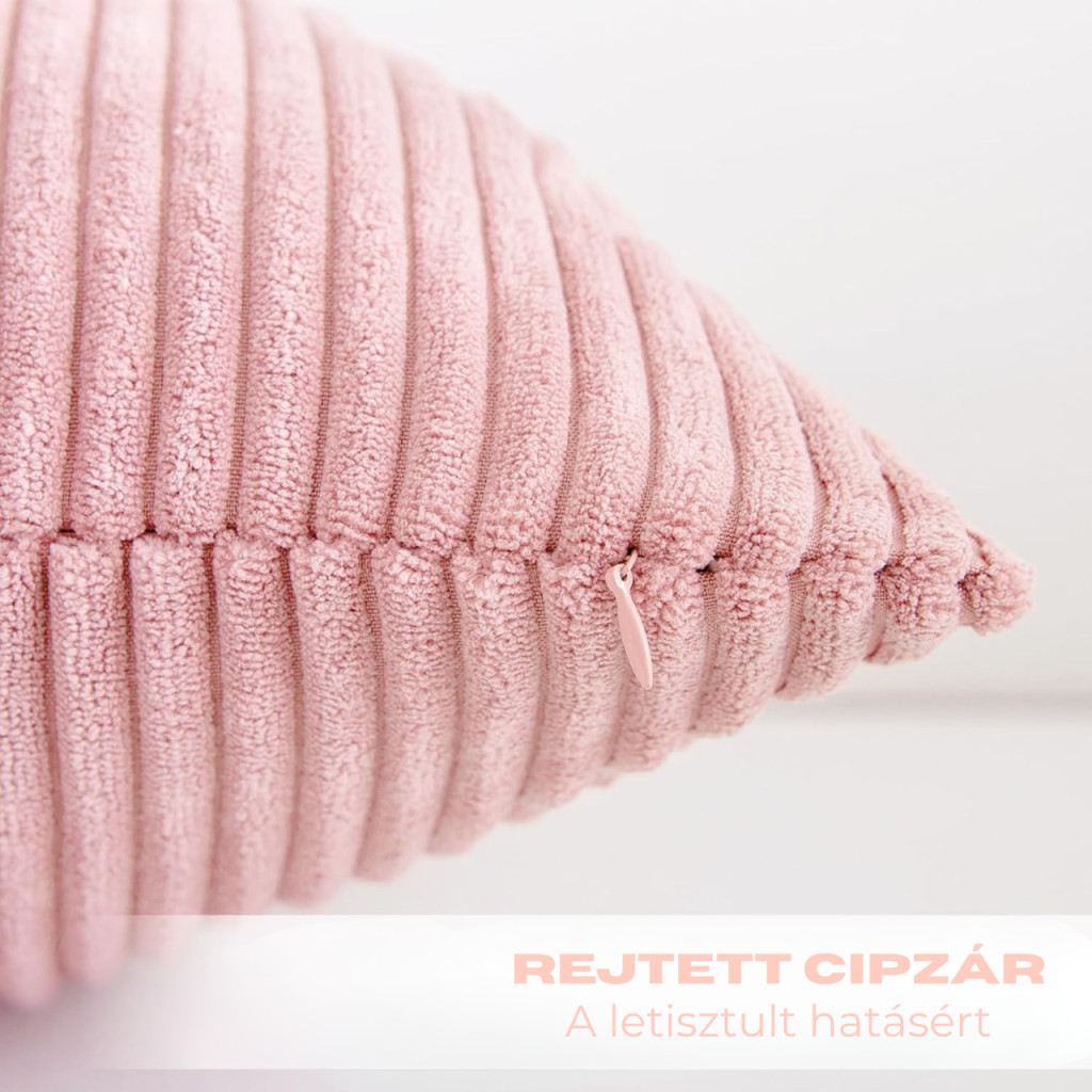 Frissítsd fel otthonod stílusát ezzel az elegáns, rózsaszín bordázott párnahuzattal! Letisztult, modern megjelenése tökéletes választás nappaliba, hálószobába vagy kanapéra. Puha tapintású anyaga kellemes komfortérzetet biztosít, míg az elegáns bordás textúra különleges karaktert ad a dekorációnak.