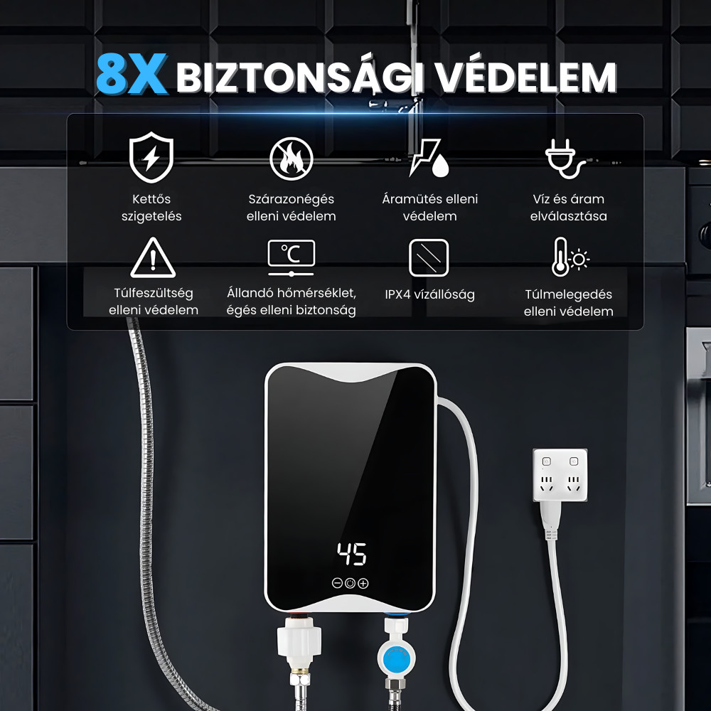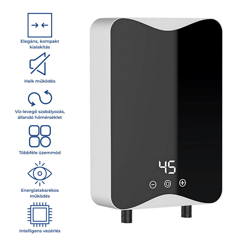 Acest încălzitor electric de apă instant este alegerea ideală dacă căutați o soluție rapidă și comodă pentru încălzirea apei. Datorită designului său montabil pe perete și rezistent la apă, se potrivește perfect atât în băi, cât și în bucătării. Afișajul digital și operarea simplă asigură o experiență prietenoasă pentru utilizator. Puterea de 5500W permite încălzirea rapidă și eficientă a apei, asigurând în același timp un consum redus de energie. Dimensiunile compacte și designul modern se integrează în orice interior. O soluție fiabilă și economică pentru locuința dumneavoastră.