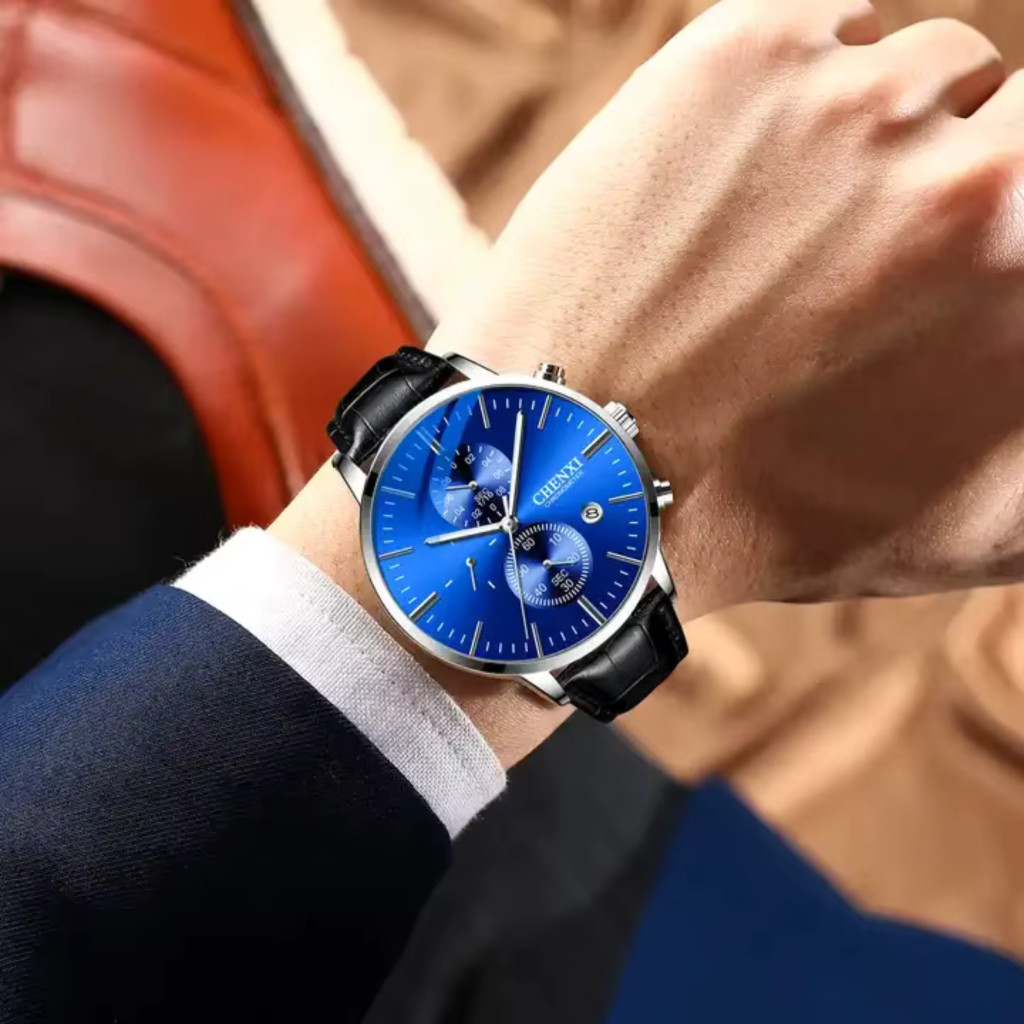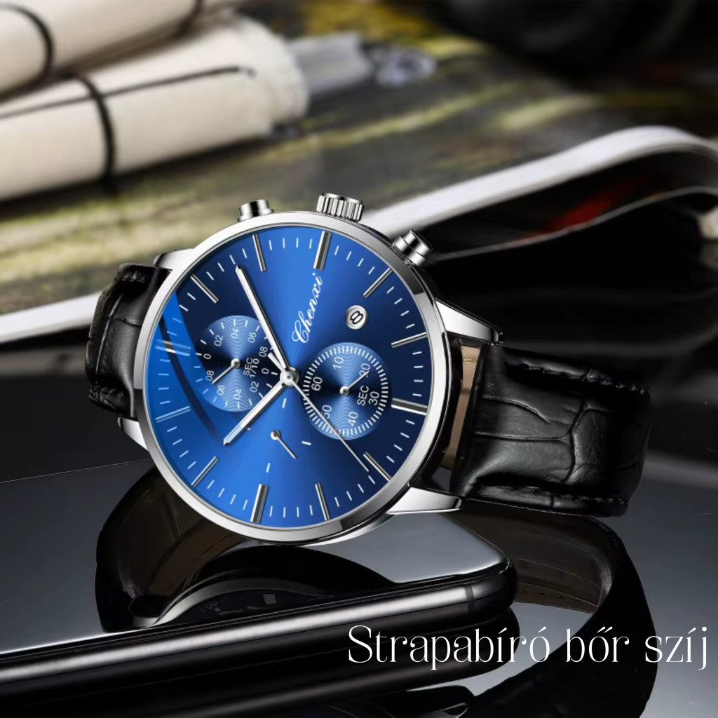 Chenxi Férfi Karóra Bőr szíjjal Díszdobozban - Kék számlappal