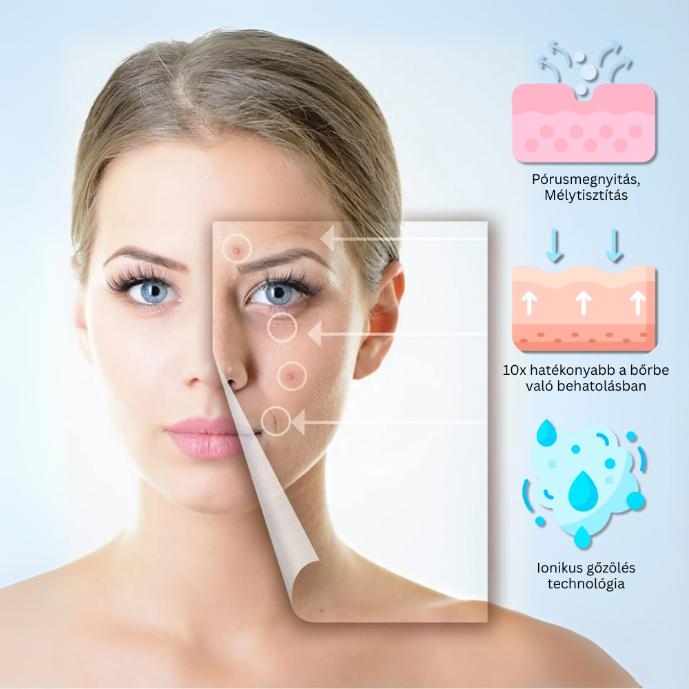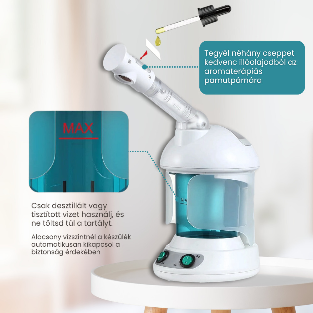 A K•SKIN ionizált arcpárásító professzionális bőrápolást biztosít otthonodban. A 360°-ban forgatható kar és az ózonos gőzterápia mélyen tisztítja a pórusokat, eltávolítja a szennyeződéseket és a mitesszereket, miközben hidratálja a bőröd. A készülék automatikusan kikapcsol, ha a vízszint túl alacsony. A gőzölés segíti a bőrápoló termékek jobb felszívódását, így hatékonyabbá teszi a napi rutinodat. A K•SKIN ionizált arcpárásítóval otthoni wellness-élményben lehet részed.